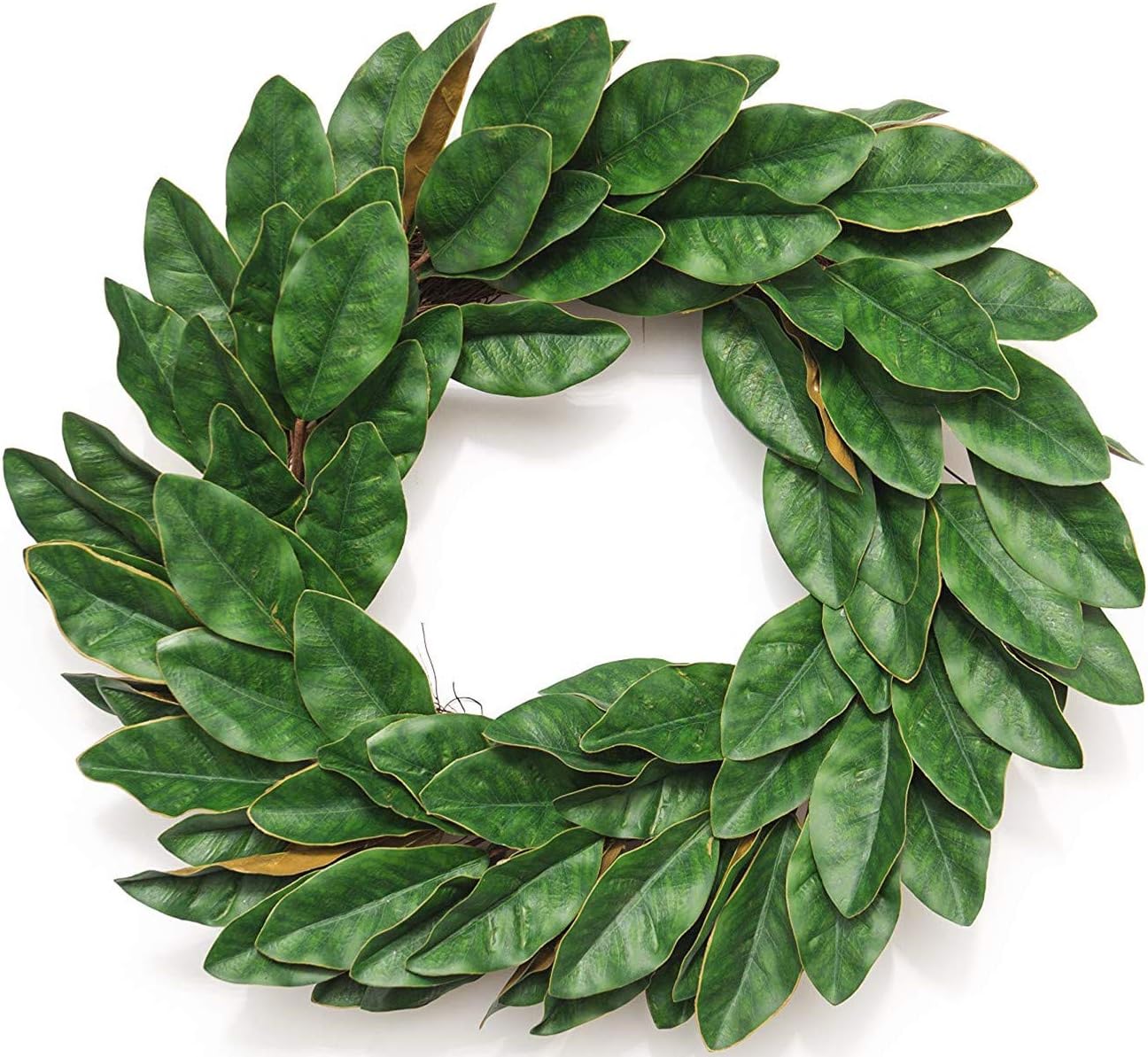 - 【Unique Design】The perfect wreath starts with vibrant PU magnolia green leaves. It is made of PU material, feel smooth and soft to the touch. Leaf veins are clearly visible, creating a realistic looking